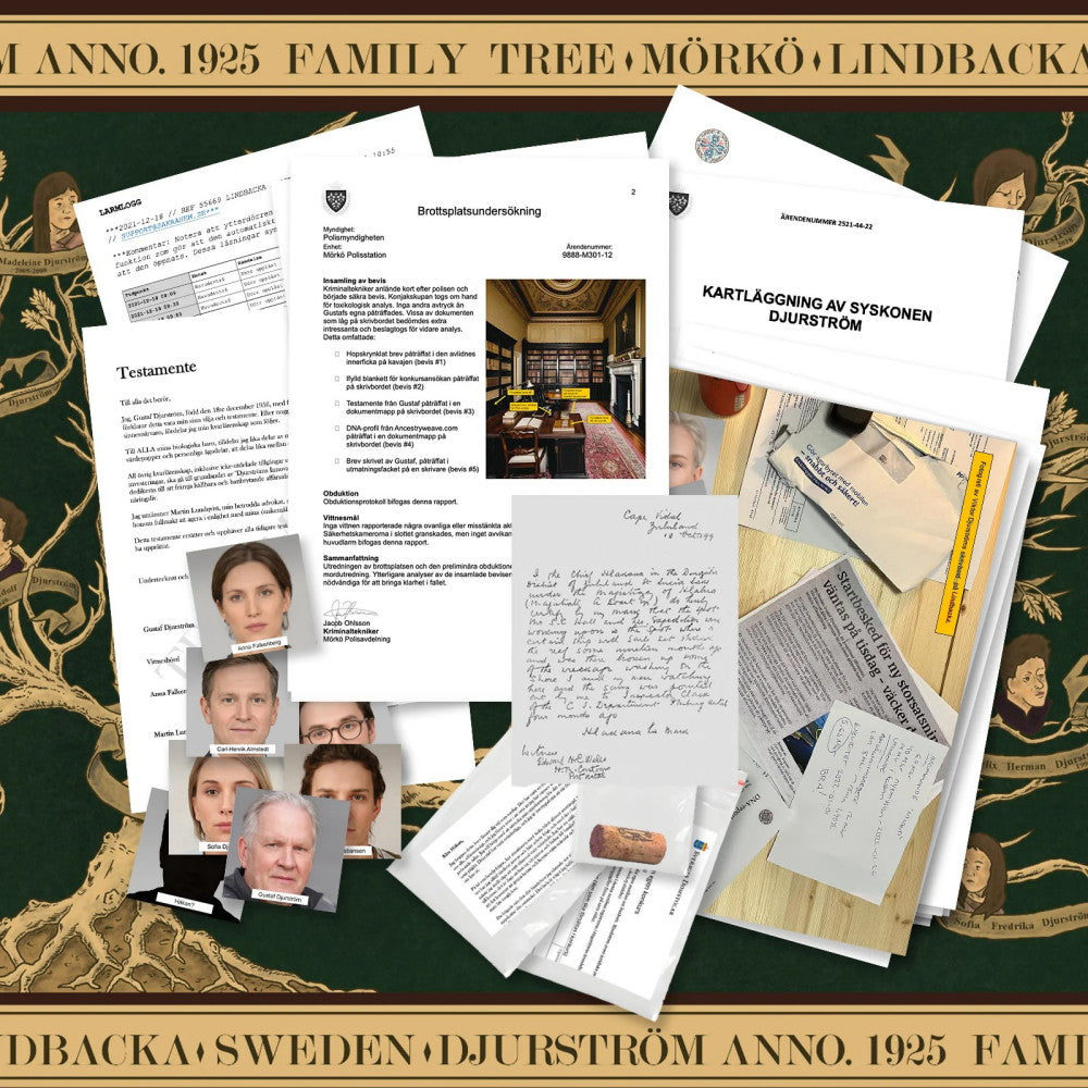 ...på Lindbacka Slott under mystiska omständigheter. Trots två års intensivt polisarbete lämnades fallet olöst och öppnades för allmänheten. Som spelare tar ni er an rollen som utredare för att lösa mordet genom att analysera det omfattande materialet och upptäcka detaljer som polisen har missat. Varje karaktär har en komplex bakgrund med potentiella motiv och dolda agendor. Vad var det egentligen som hände på Lindbacka den där vintermorgonen?