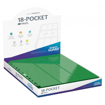 Ultimate Guard: 18-Pocket Side-Loading Pages (10) Red70,00 krHigh-quality, double-sided pocket pages (18 pockets, 9 pockets each on front and back side), that fit in almost any D-Ring-Binder, thanks to the double reinforced 11-hole strip. Each pack contain...