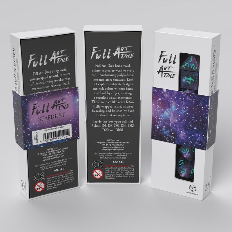 This isn’t just another set. It’s a celebration of our boldest design direction yet — where technology meets art and play meets passion. These dice were made for those who want more than tools for gaming. They’re for those who see the tabletop as a stage, and each roll as a moment worth remembering.- Full Art Format – This set contains 7 pieces: D4, D6, D8, D10, D00, D12, and D20.