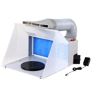 Spray Booth with Air Hose1.499,00 krInput: AC100-240V 50/60HZ • Motor: DC12V/1.6A • Power: 25 w • Noise: 47 db • Air flow: 4 m³ • Netto weight: 3.95 kg • Extend Dimension: 48*42*36 cm • Shink Dimension: 42*15*24 cm