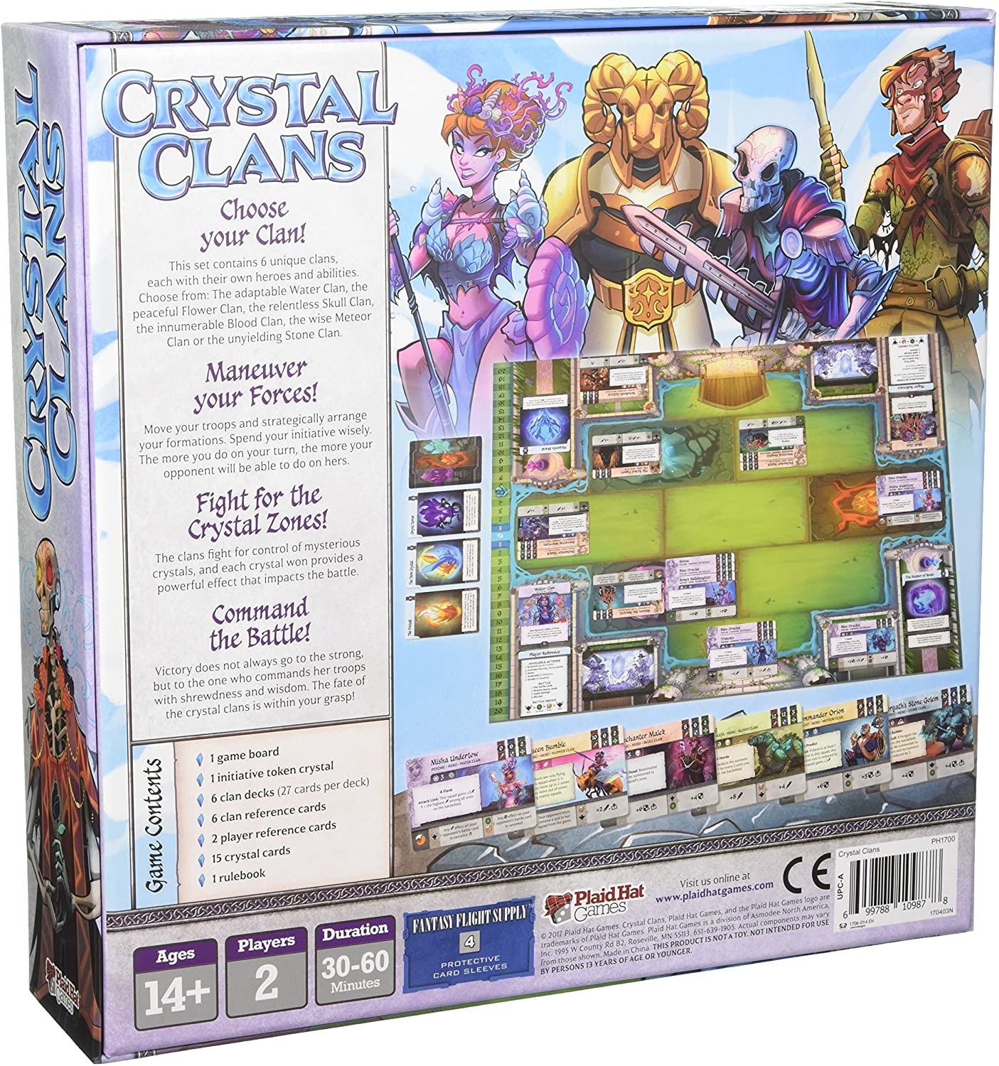Duration: 30-60 minChoose your clan, prepare for battle, and fight for control of powerful crystals in Crystal Clans, a battle card game for two players.