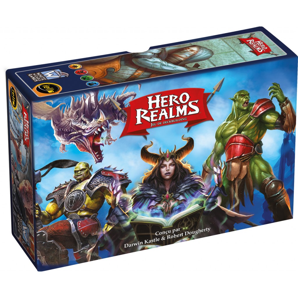 Hero Realms is a fantasy-themed deck-building game that is an adaptation of the award-winning Star Realms game. The game includes basic rules for two-player games, along with rules for multiplayer formats such as Free-For-All, Hunter, and Hydra.