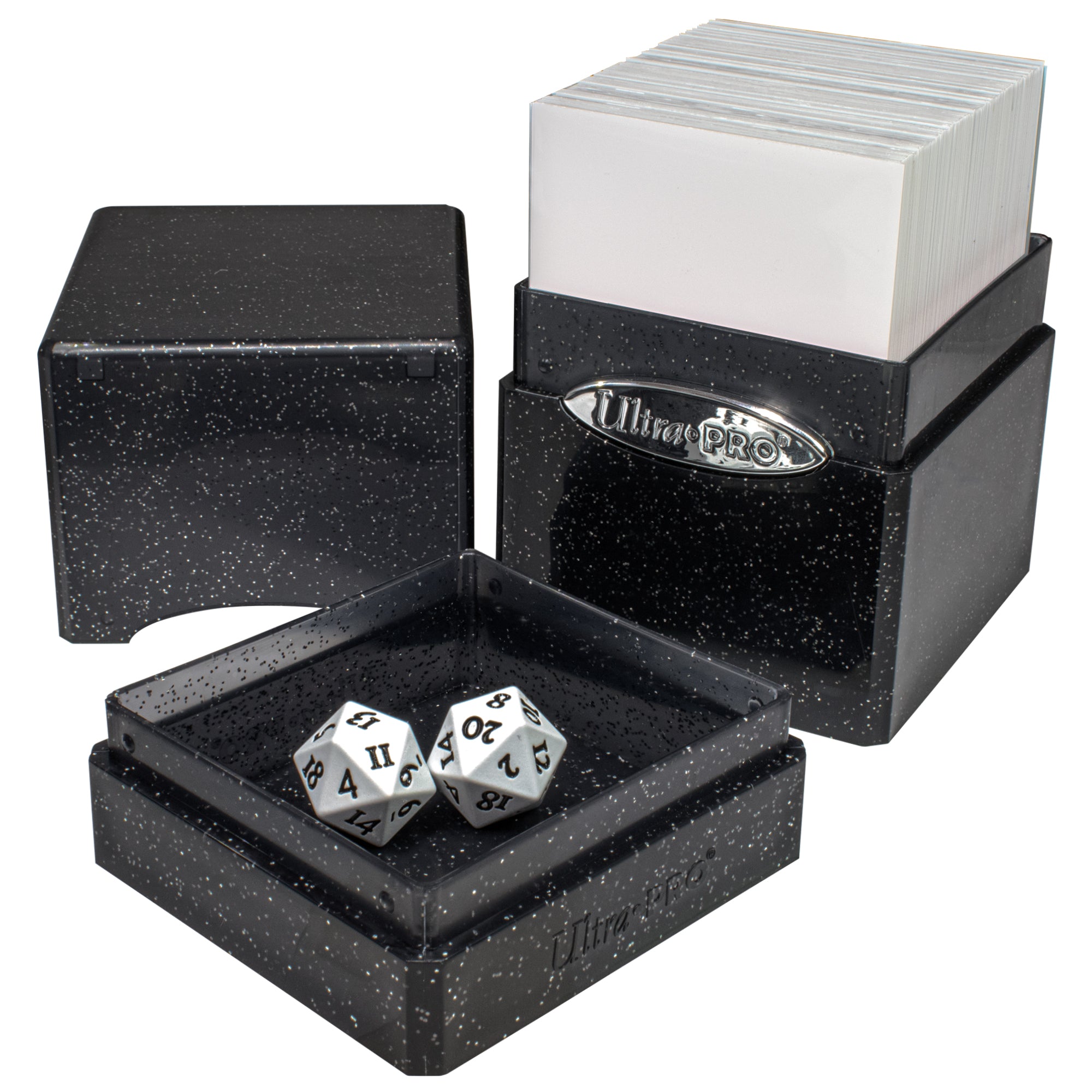 The Satin Tower is Ultra PRO’s best selling Deck Box®! The durable, injection molded plastic shell is designed to store and protect 100+ standard size trading cards in Ultra PRO Deck Protector® sleeves and includes a spacious bottom compartment for dice, coins, or life counters. The unique snap-fit locking mechanism keeps your valuable cards and components securely stored. This Satin Tower features a Glitter finish, but Satin Tower is also available with Hi-Gloss and Classic Satin finishes! Collect them all!