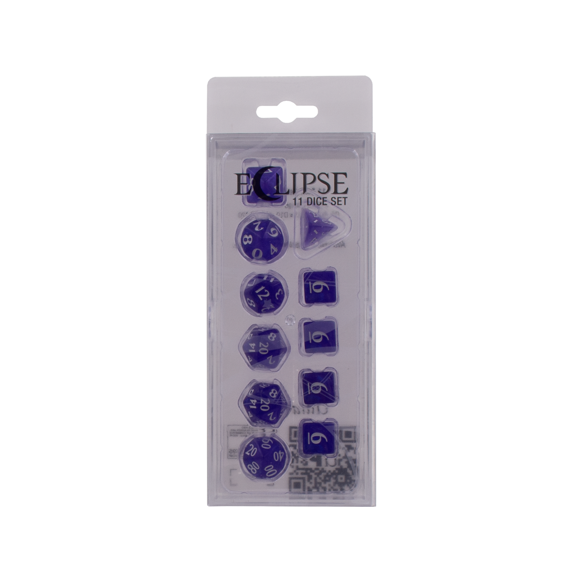 The Eclipse Pacific Blue 11 Dice Set is a gamer's best friend! While most RPG dice sets include only the polyhedral 7, Ultra PRO is here to help you UP your game with additional dice needed for modern RPG games. Each set includes D4, 4x D6, D8, 2x D10, D12, and 2x D20. The dice come in a 2-piece acrylic storage box with enough space for up to 40 dice and are sized to fit pens, markers, or other small RPG accessories. Eclipse Dice feature a shimmering finish that makes every roll magical! Aligned with the 12 Eclipse colors, these dice are the perfect companion for the 100+ Deck Boxes, Matte or Gloss sleeves, and PRO-Binders.