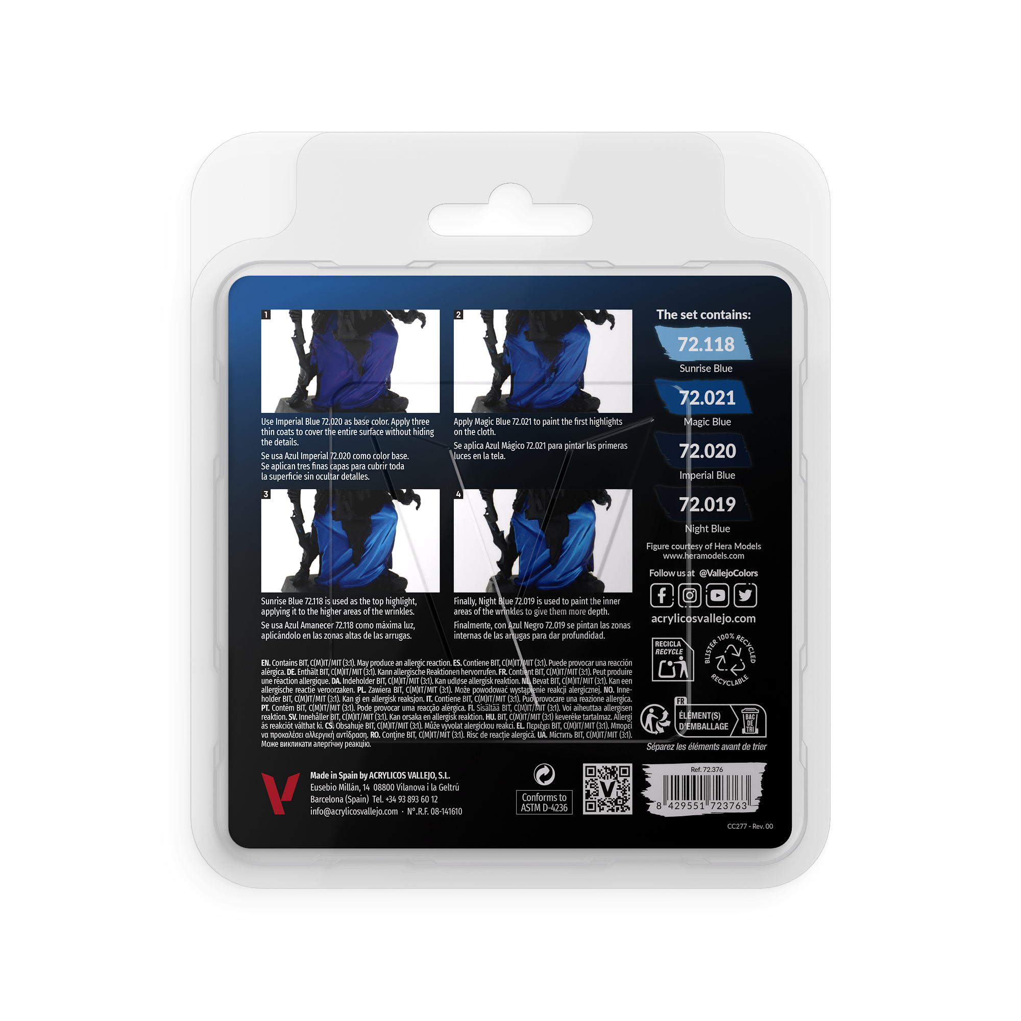 The set contains four shades designed for painting tanned and weathered skin: a base color, a shadow color and two highlighting shades.
