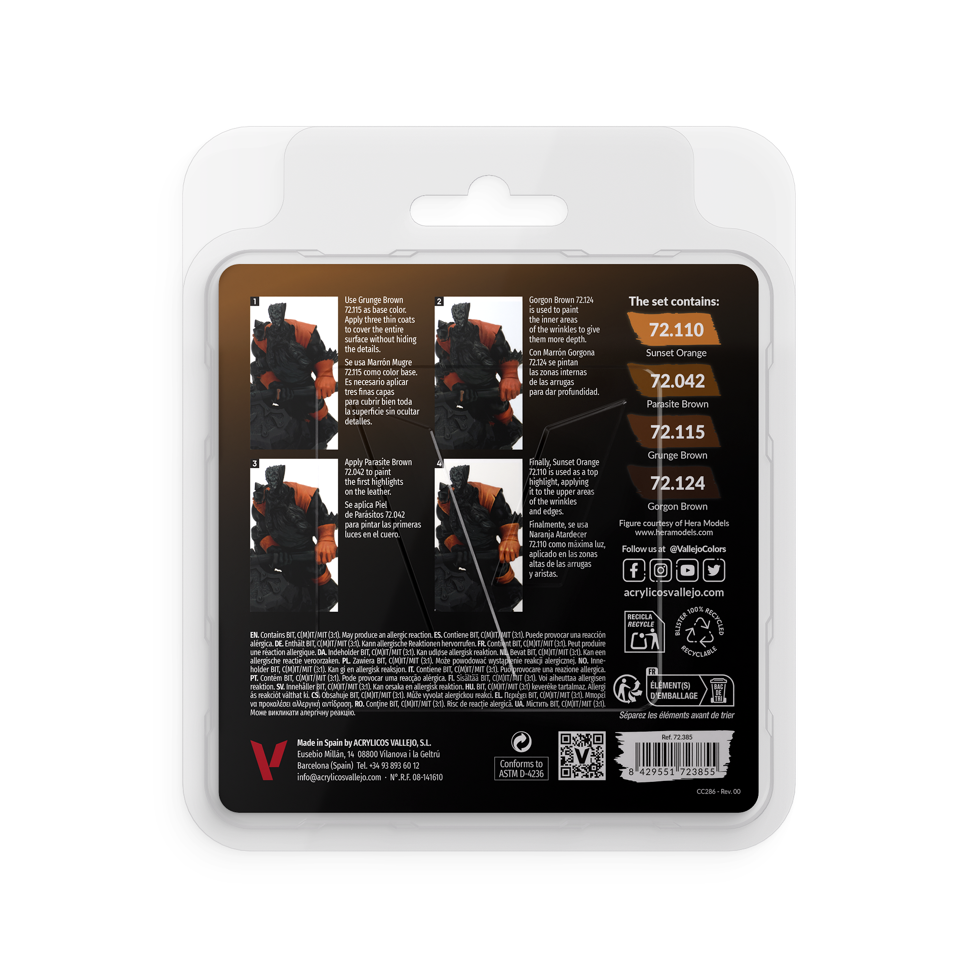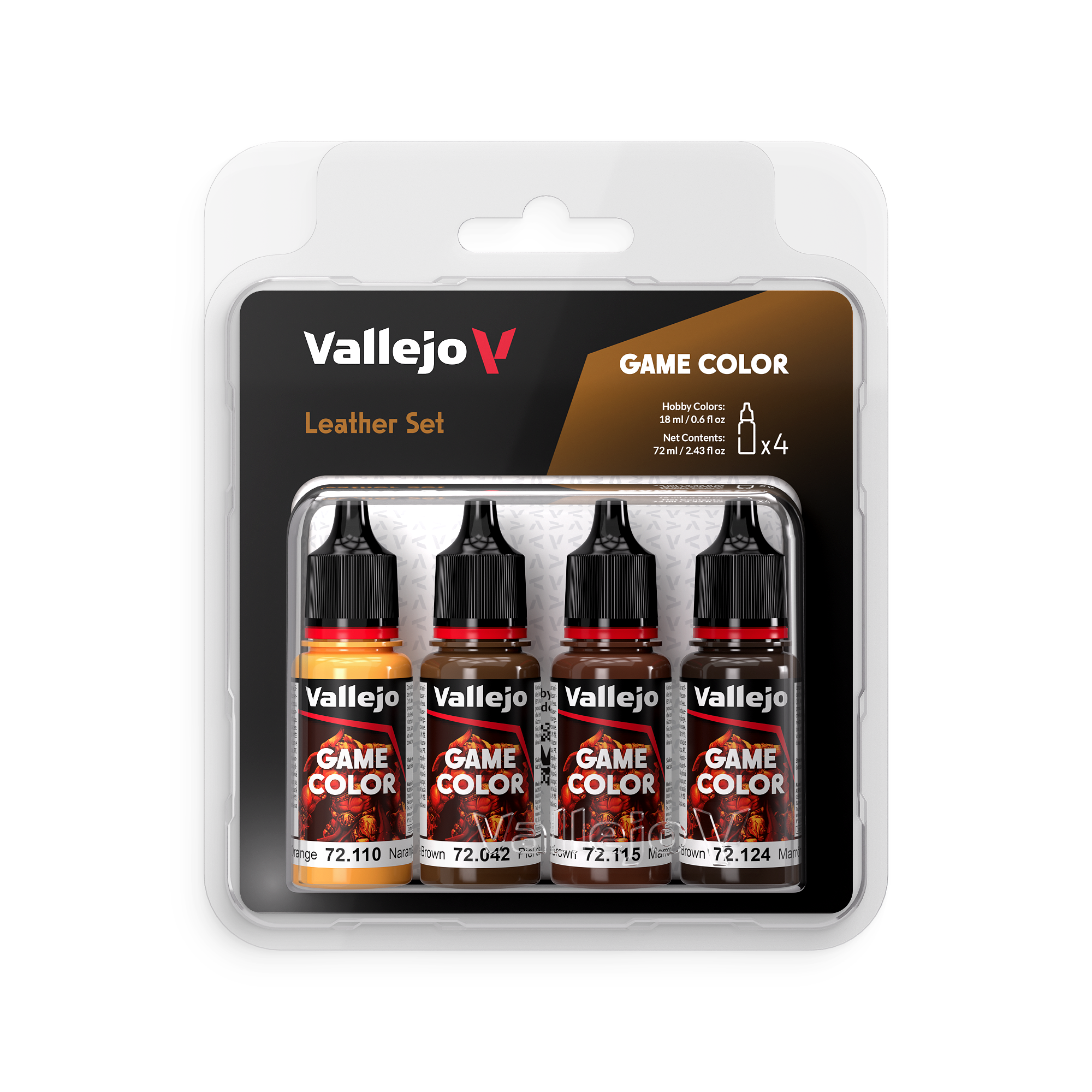 The set contains four shades designed for painting tanned and weathered skin: a base color, a shadow color and two highlighting shades.