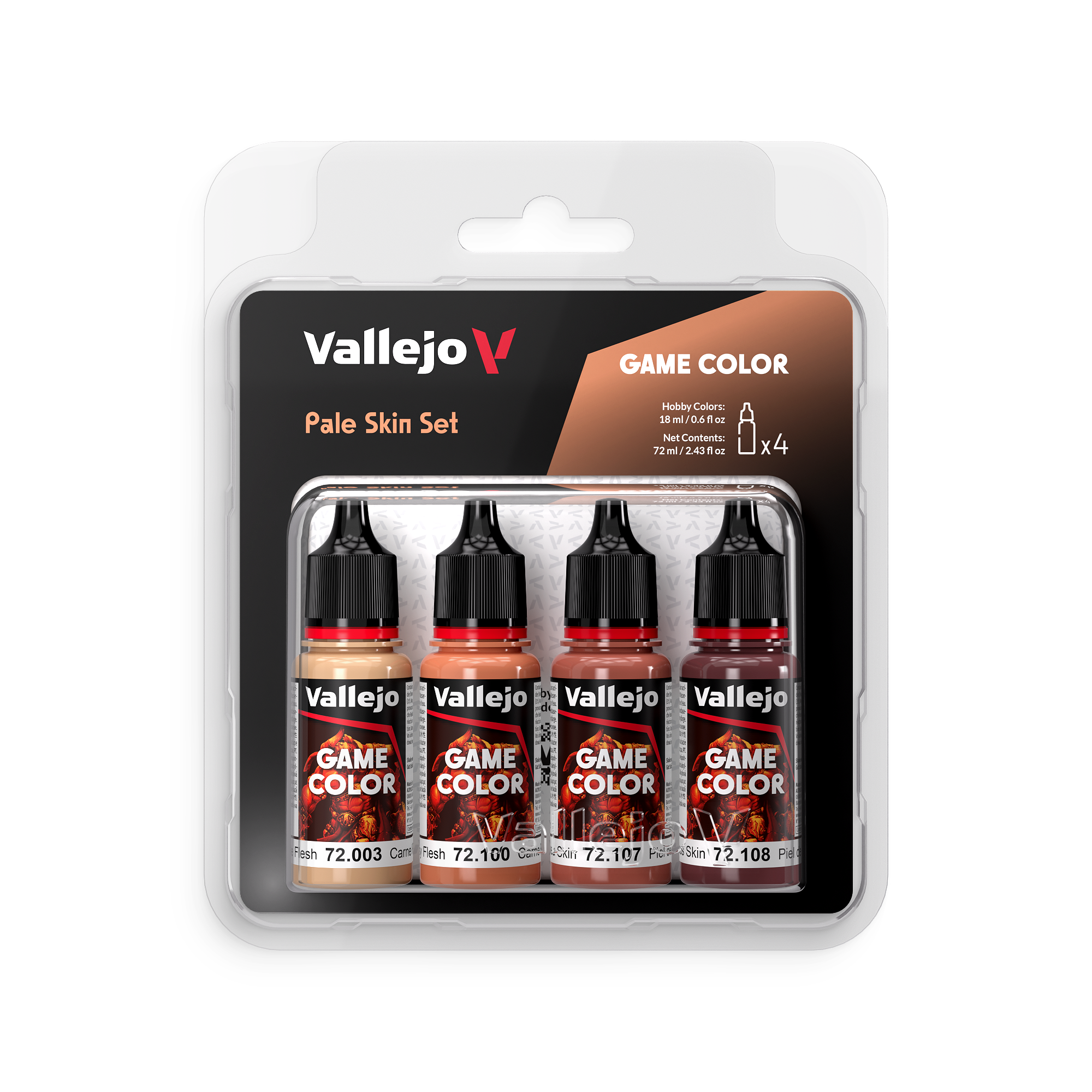 The set contains four shades designed for painting tanned and weathered skin: a base color, a shadow color and two highlighting shades.