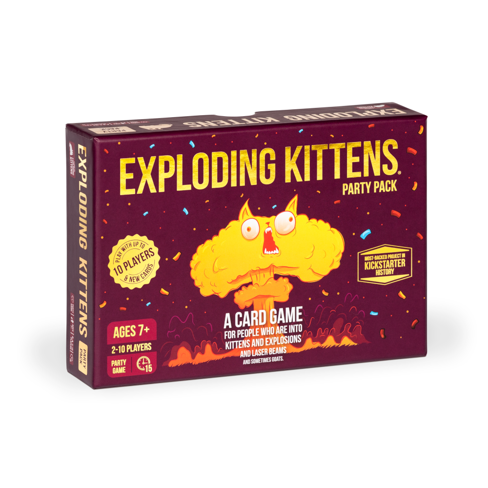 This stand-alone game includes cards from Exploding Kittens, Imploding Kittens and the Exploding Kittens App and allows 2-10 players
