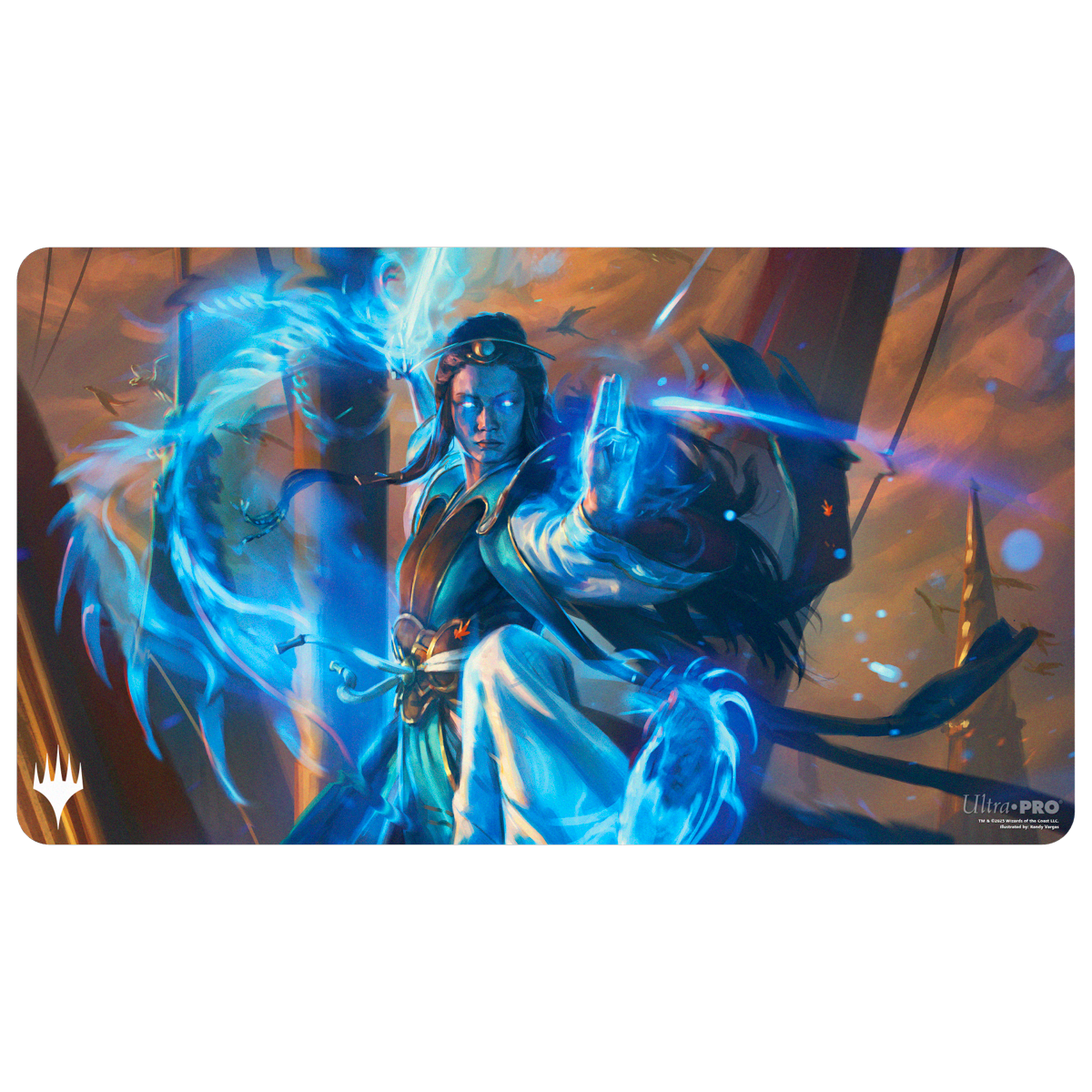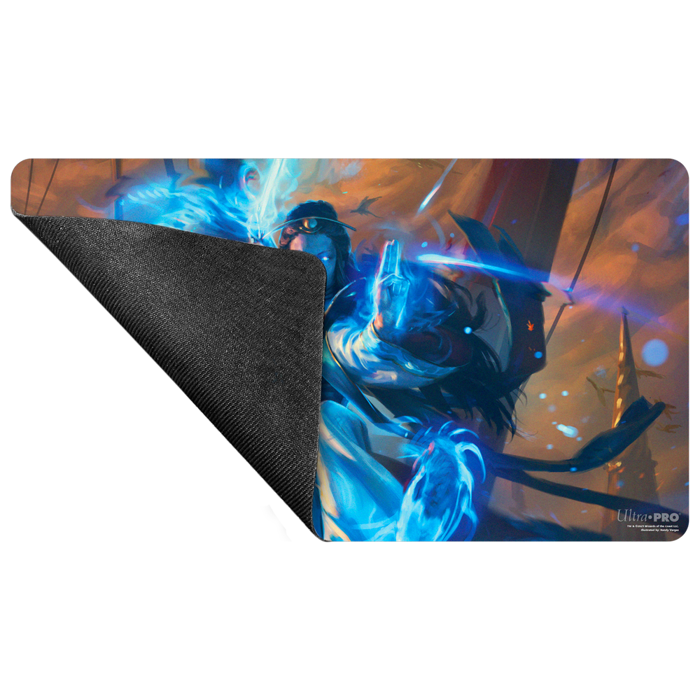 Playmats feature popular Magic: The Gathering artwork and enhance your gameplay experience! Each playmat is made with a soft fabric top to reduce damage to cards, and the non-slip rubber backing keeps the playmat from shifting during use. With dimensions of approximately 24 in. x 13.5 in., a playmat also makes an excellent oversize mousepad for home or office.