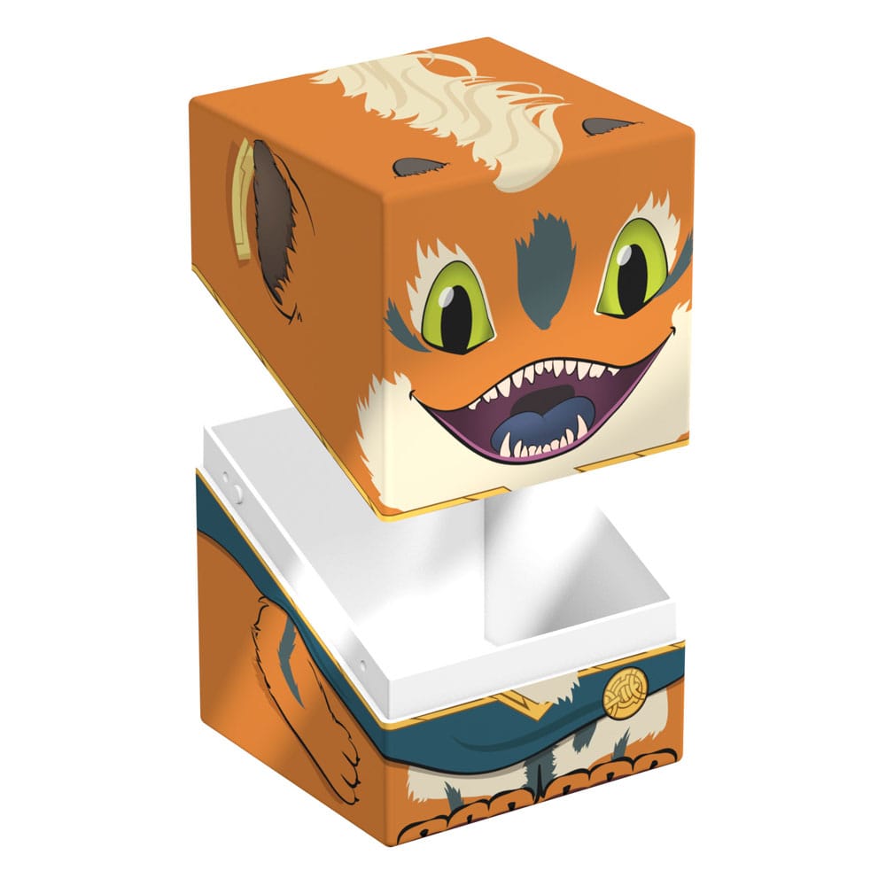 Collectible box for storing your deck, tabletop gaming accessories, and/or collectibles. The Liliana Squaroe from the Magic: The Gathering edition holds up to 100 cards in double protective sleeves if used as a deck box. Squaroes are made from 78% renewable resources.