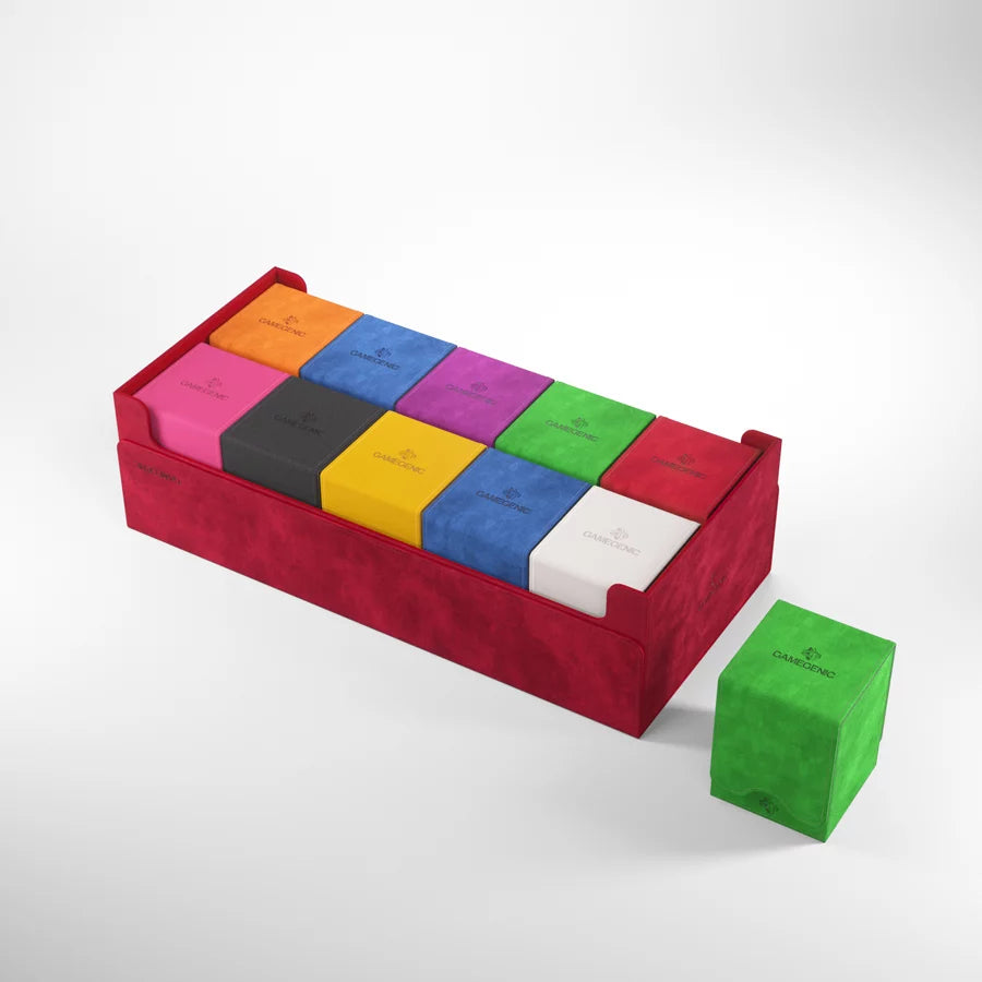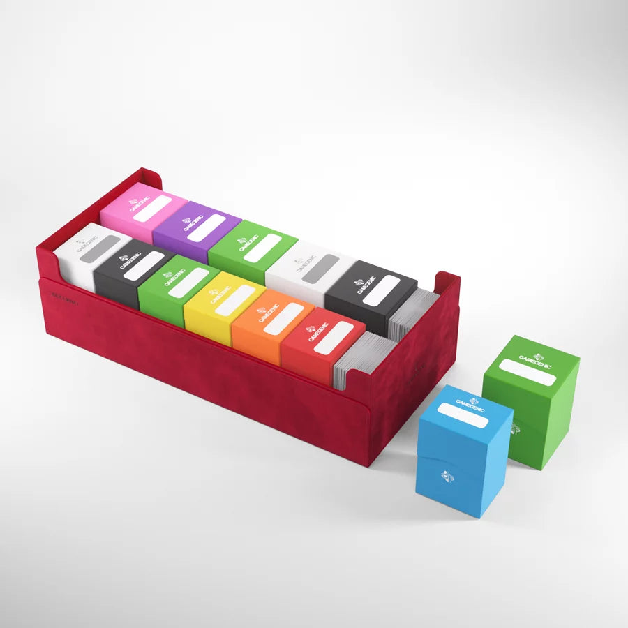 The Dungeon is ideal for housing a complete card collection. It holds several deck boxes, playmats, accessories and, of course, a huge number of single cards (even protected in bigger toploader sleeves). The closing mechanism is subtle but strong thanks to an ingenious design that keeps the box safely closed even when it is fully loaded.