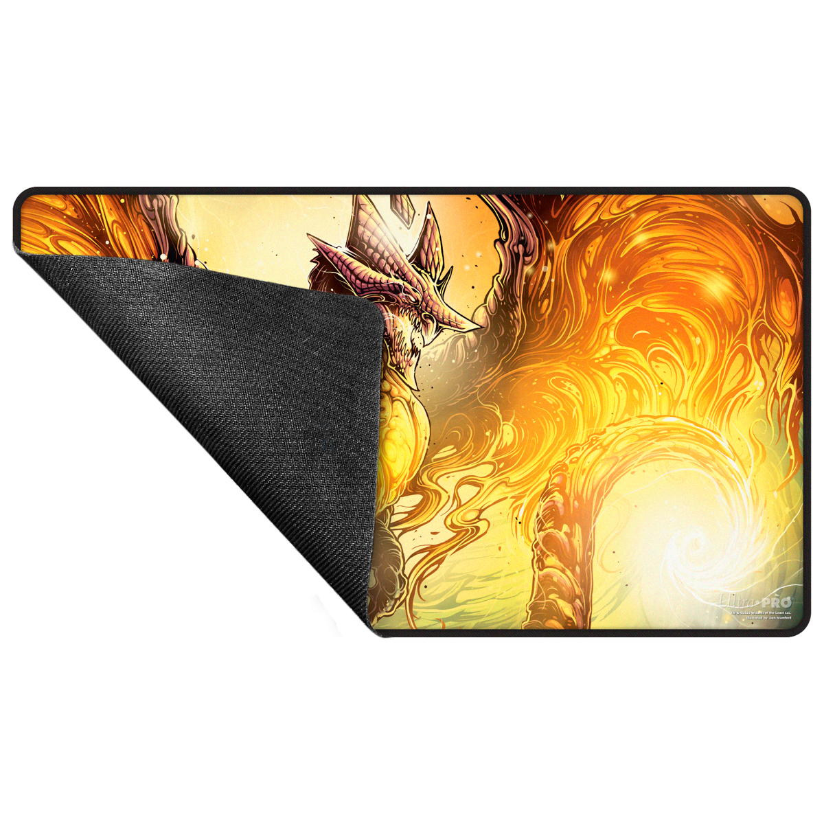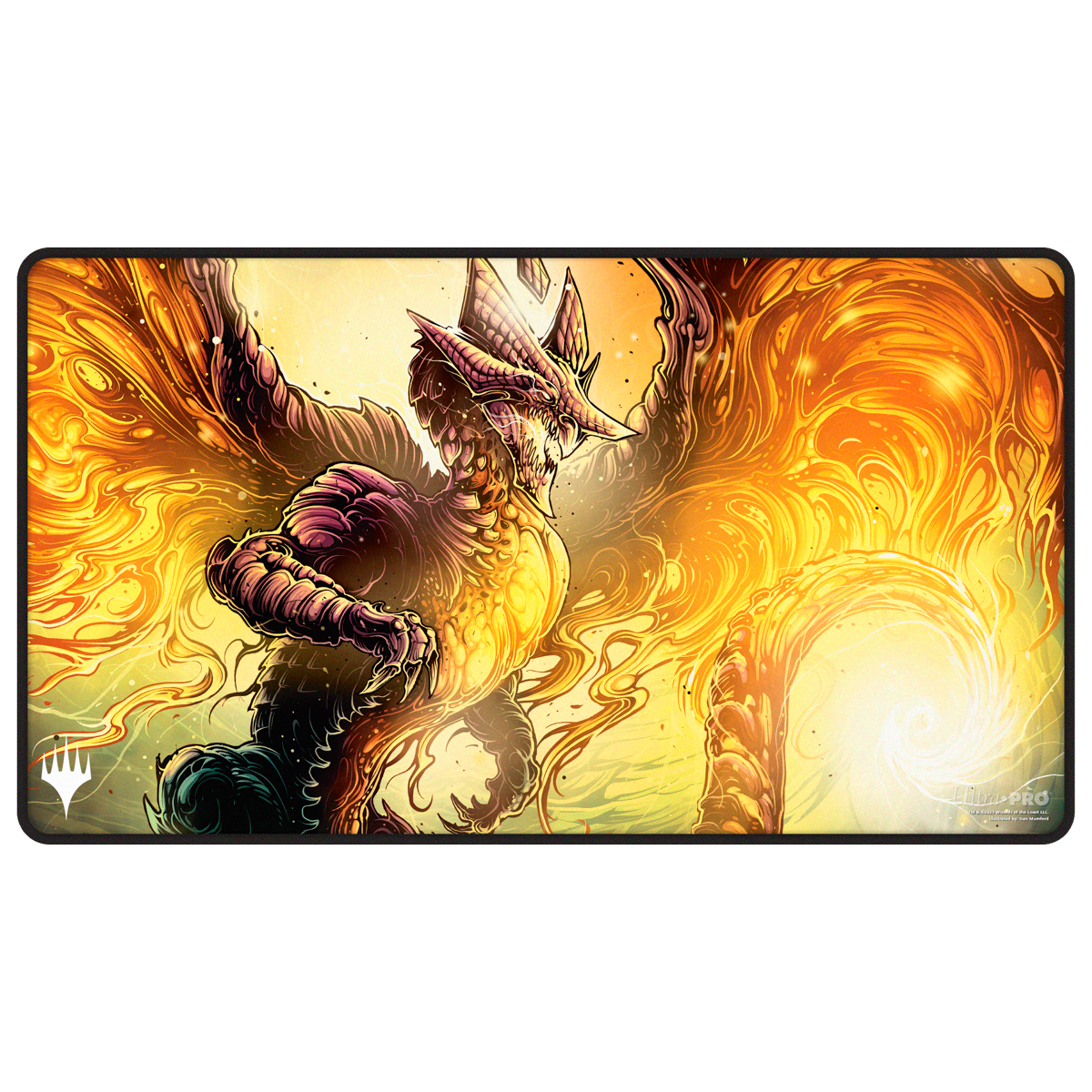 Black Stitched Playmats feature popular Magic: The Gathering artwork, and black stitched edges offer an added premium feel. Made with a soft fabric top to reduce damage to cards during play and a non-slip rubber backing to keep the playmat from shifting during use, playmats enhance the gameplay experience. With dimensions of approximately 24 in. x 13.5 in., a playmat also makes an excellent oversize mousepad for home or office.
